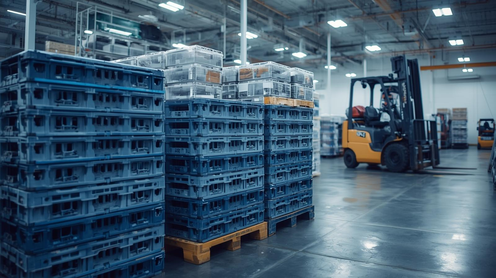 ilustrasi gambar pallet plastik dalam penyimpanan dan distribusi
